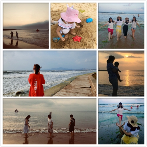 清新的空气伴随着阵阵海风迎面扑来沁人心脾,把酷暑炎热一点点带走。海水卷起一层层白色的浪花,家长与孩童在沙滩上捡拾贝壳、堆城堡、相互追赶着,欢快的笑声中尽情地享受着与家人在一起的幸福时刻。