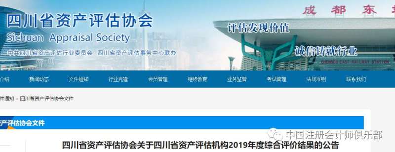 为引导资产评估机构有序竞争,促进资产评估机构提高服务质量和执业水平,推动我省资产评估行业健康发展,按照《四川省资产评估机构综合评价暂行办法》(川评协〔2020〕4号),四川省资产评估机构综合评价委员会办公室对属于评价范围内的资产评估机构进行了综合评价,现公告如下: