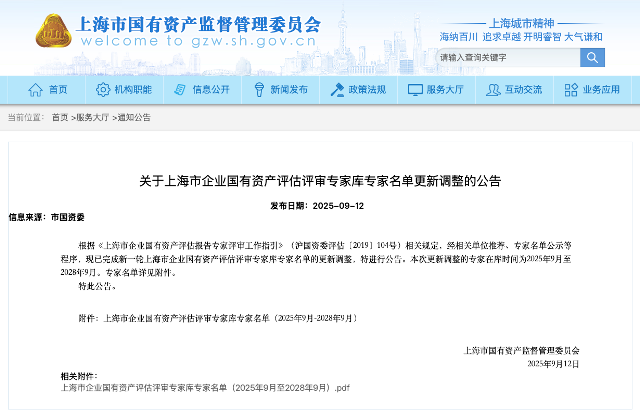 上海市企业国有资产评估评审专家库专家名单由市国资委根据《上海市企业国有资产评估报告专家评审工作指引》(沪国资委评估〔2019〕104号)相关规定,经相关单位推荐、专家名单公示等程序进行。入选上海市企业国有资产评估评审专家库专家名单,既是对个人专业能力的认可,也是服务行业与国资监管的重要担当。
