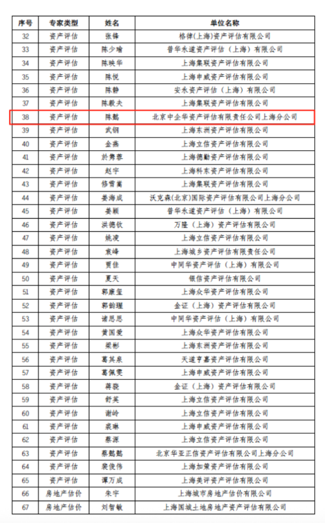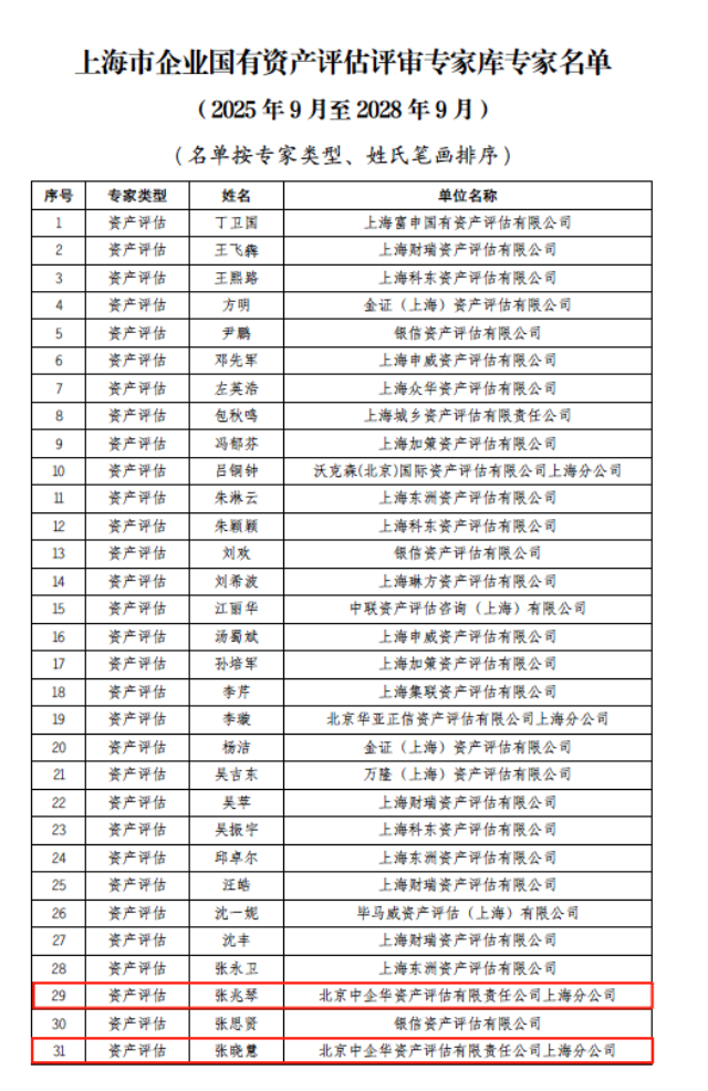 热烈祝贺中企华张晓慧、陈懿、张兆琴入选上海市企业国有资产评估评审专家库专家名单